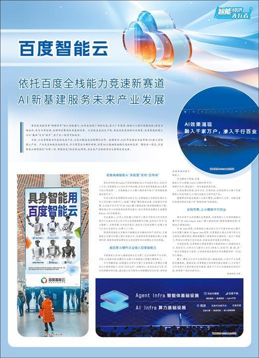 面向未来产业的规模化发展趋势,百度智能云正加速构建面向量产的“AI Infra+Agent Infra”(算力基础设施+智能体基础设施)全栈AI云基础设施。